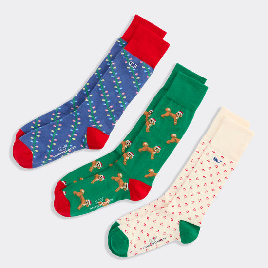 Santa Doodle & Lights 3-Pack Socks in Multi by Vineyard Vines