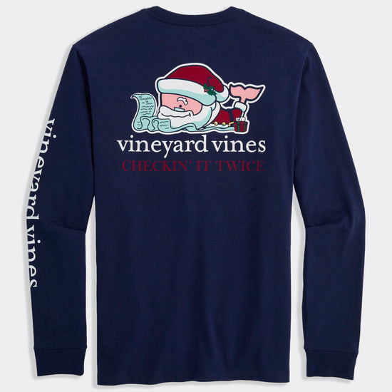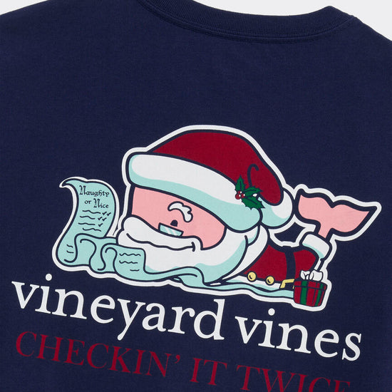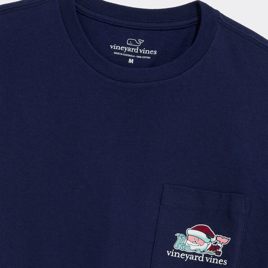 Santa Whale List Long Sleeve Pocket Tee in Nautical Navy by Vineyard Vines