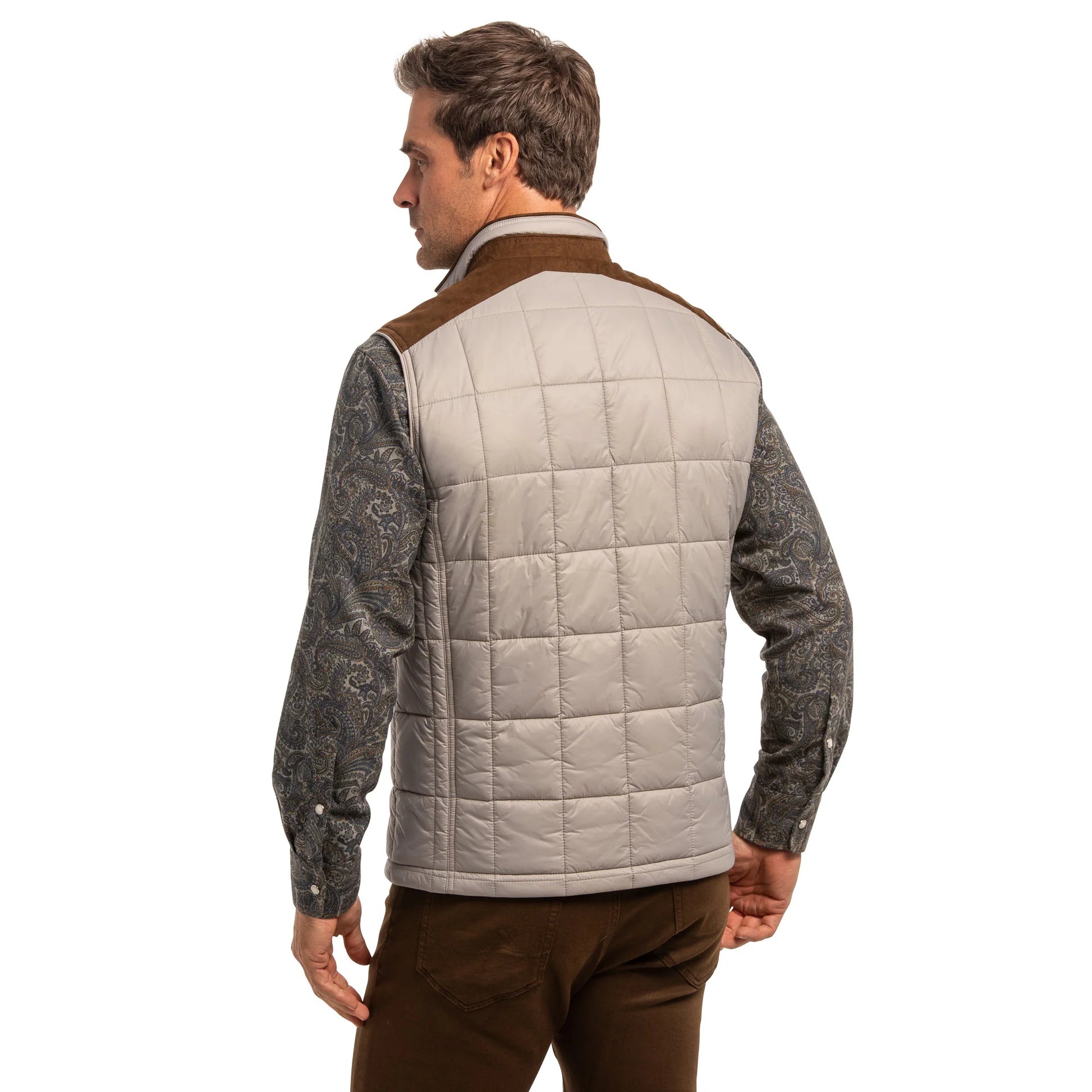 Crafted for crisp days and cool nights, the Shelby Quilted Nylon Vest is a lightweight layer designed with both comfort and style in mind. Made from box-quilted nylon with soft microsuede accents at the yoke and front piping, it brings subtle contrast and structure to a clean silhouette.