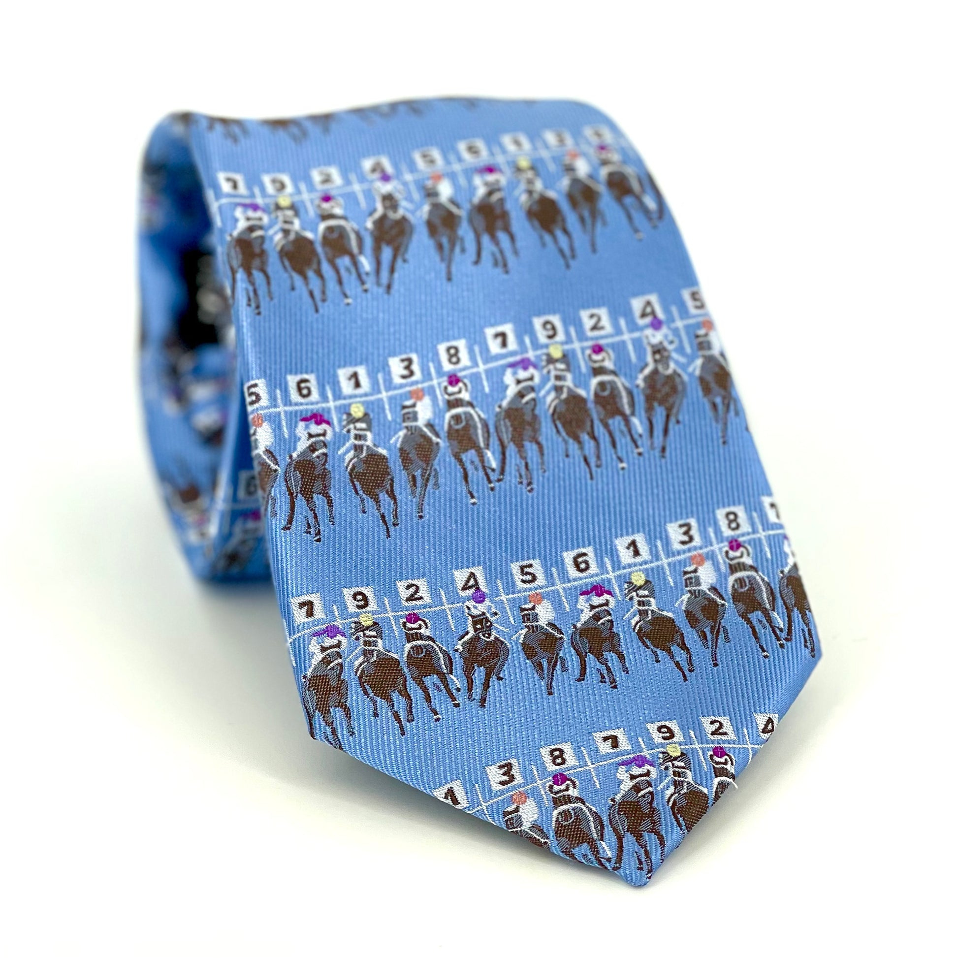 "Starting Gate" 100% Silk Neck Tie in Sky Blue by Logan's