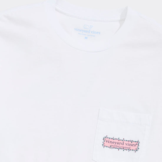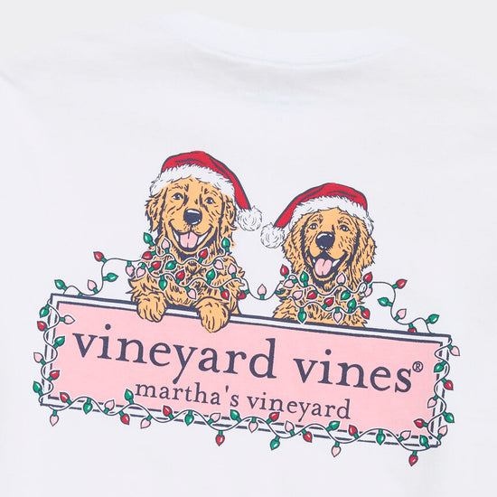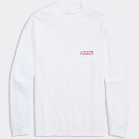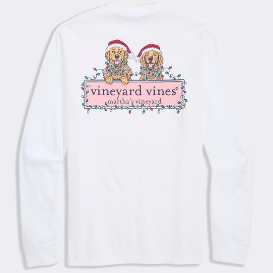 String Lights Pups Logo Box Long Sleeve Pocket Tee in White Cap by Vineyard Vines