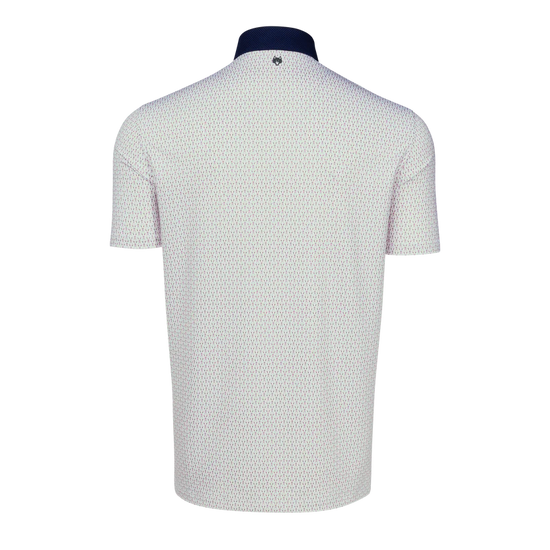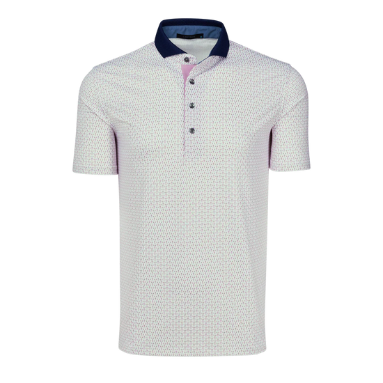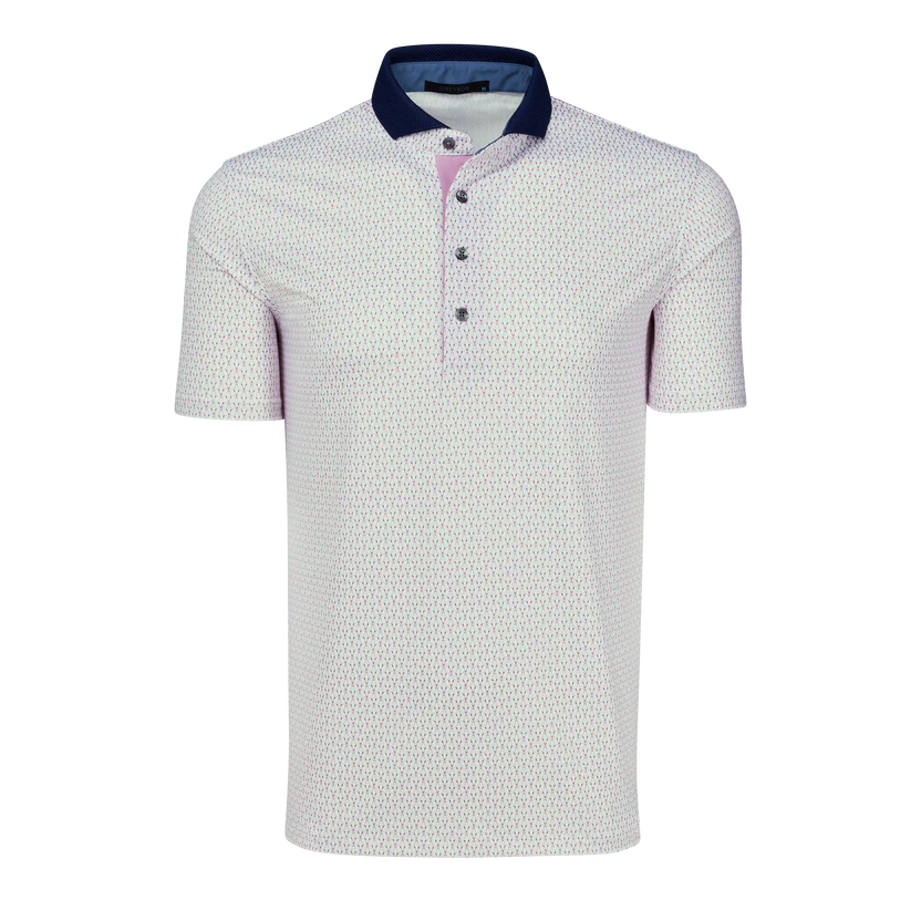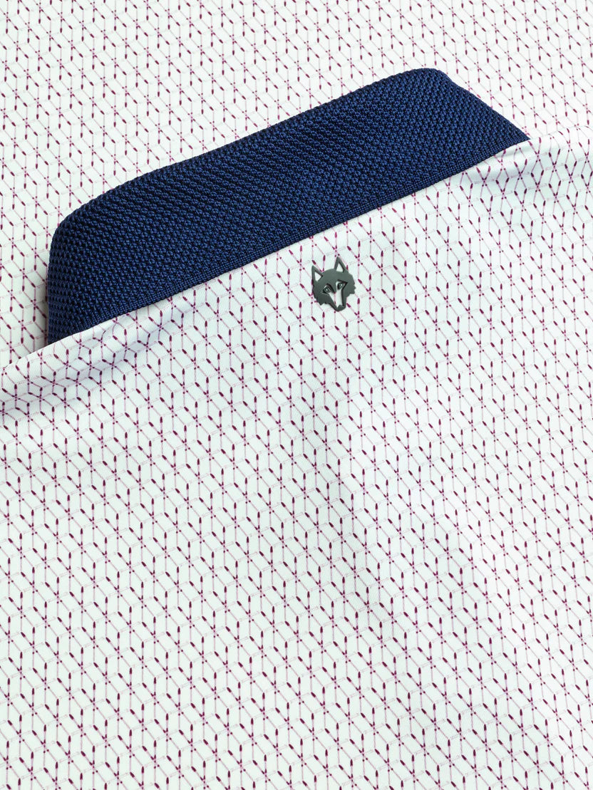 The Targhee Short Sleeve Polo is made from lightweight performance fabric that delivers breathable comfort, quick-drying function, and anti-odor technology. An all-over geometric interlocking pattern adds visual depth and character, framed by a four-button placket with contrast detailing under and at the top facing for subtle distinction. The open hem and cuffs provide a comfortable fit that moves with you. Designed for versatility from the course to an evening out.