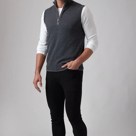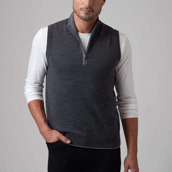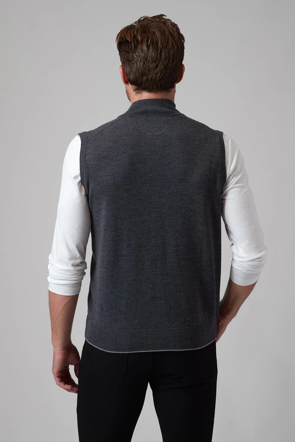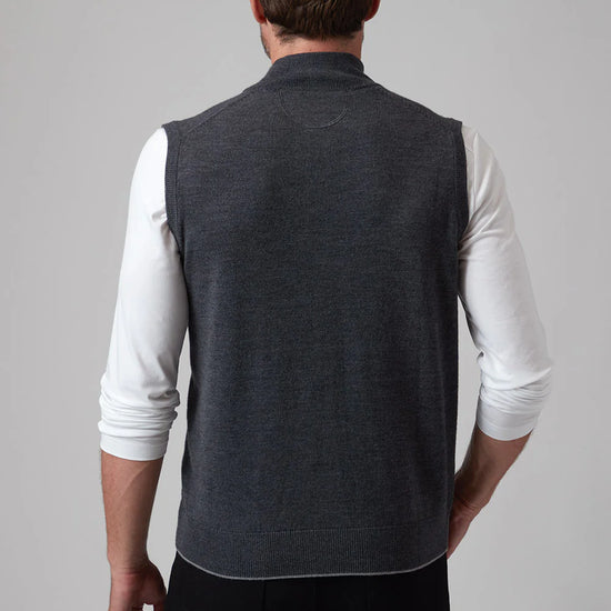 The Byron is our sporty version of the sweater vest. Made from 100% Extrafine Merino Wool with a mock neck quarter zip front for a casual look. When you need extra warmth, a great layering piece to pair with any of our Aqua Cotton tees, you'll look dapper on or off the golf course.