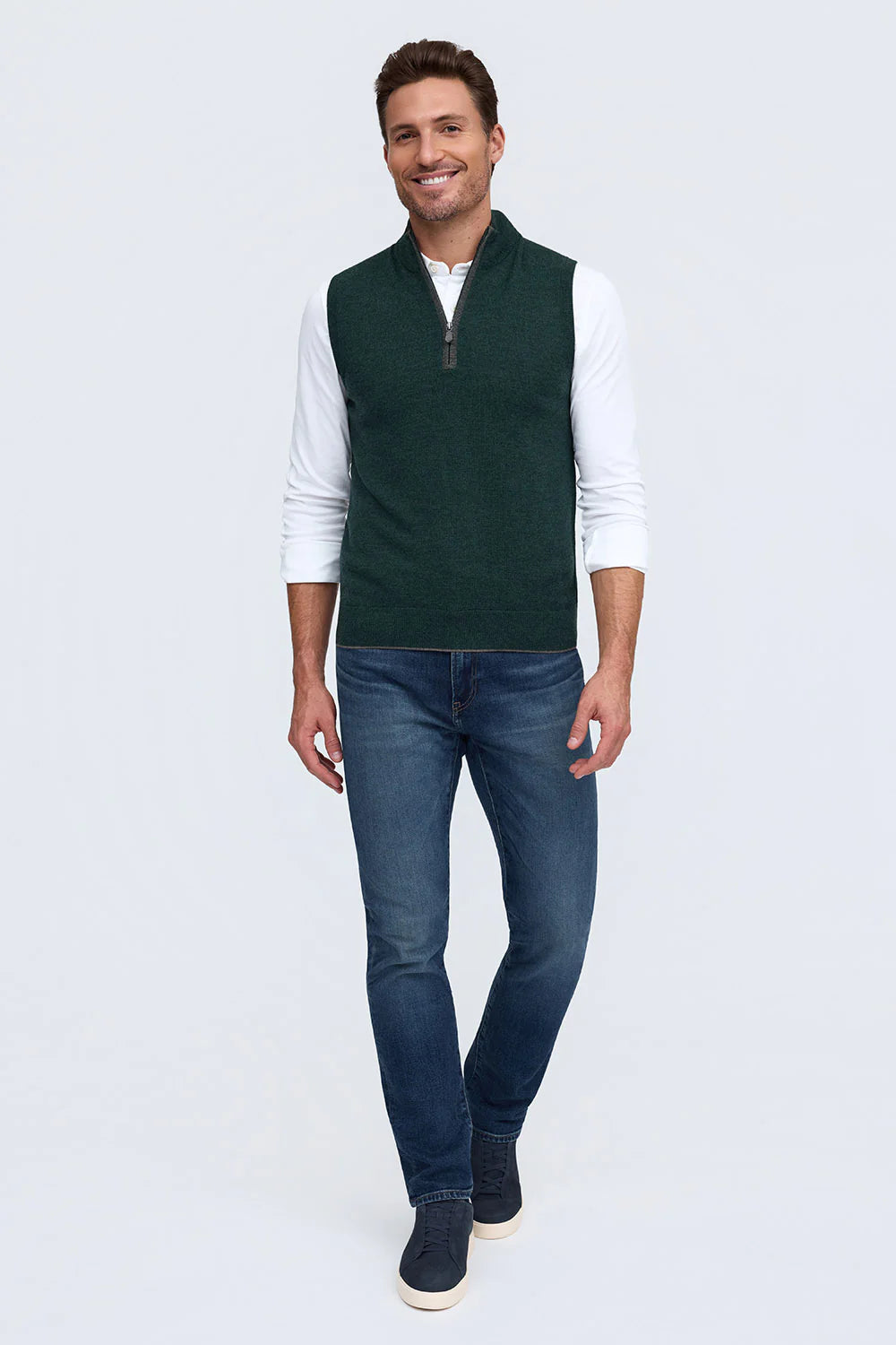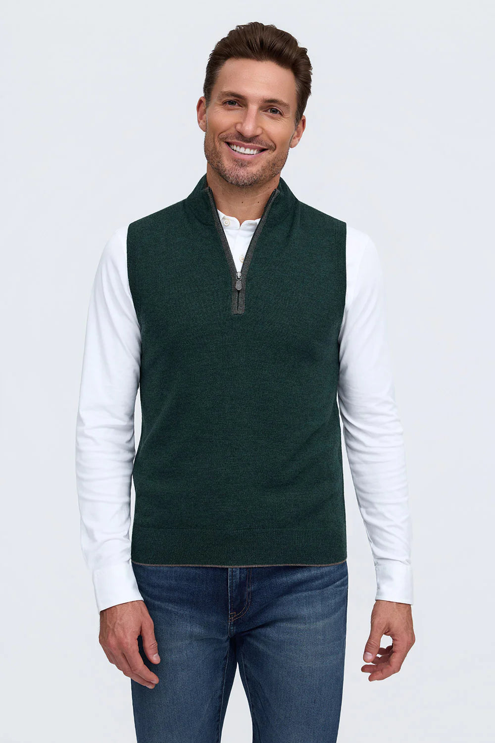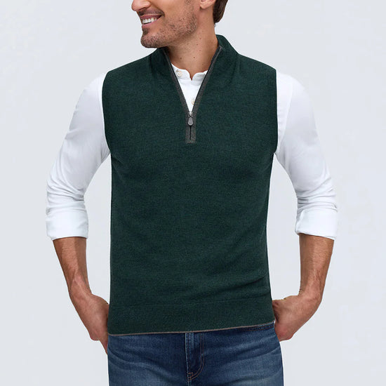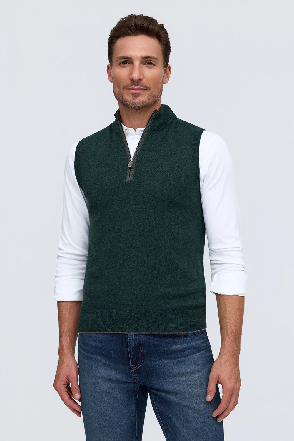 The Byron is our sporty version of the sweater vest. Made from 100% Extrafine Merino Wool with a mock neck quarter zip front for a casual look. When you need extra warmth, a great layering piece to pair with any of our Aqua Cotton tees, you'll look dapper on or off the golf course.