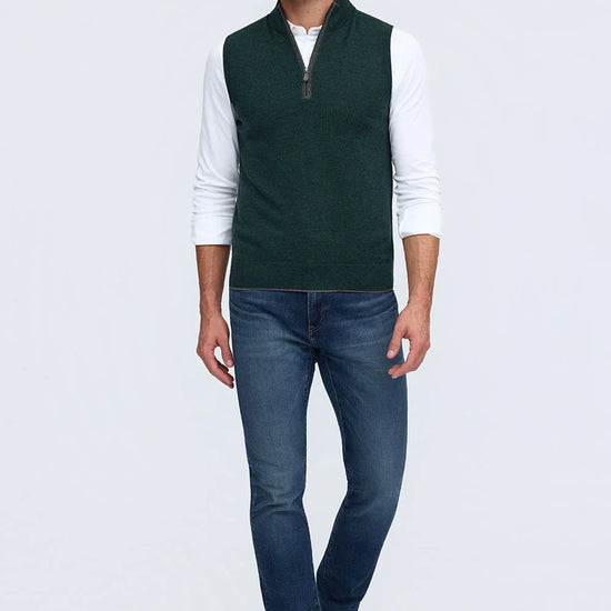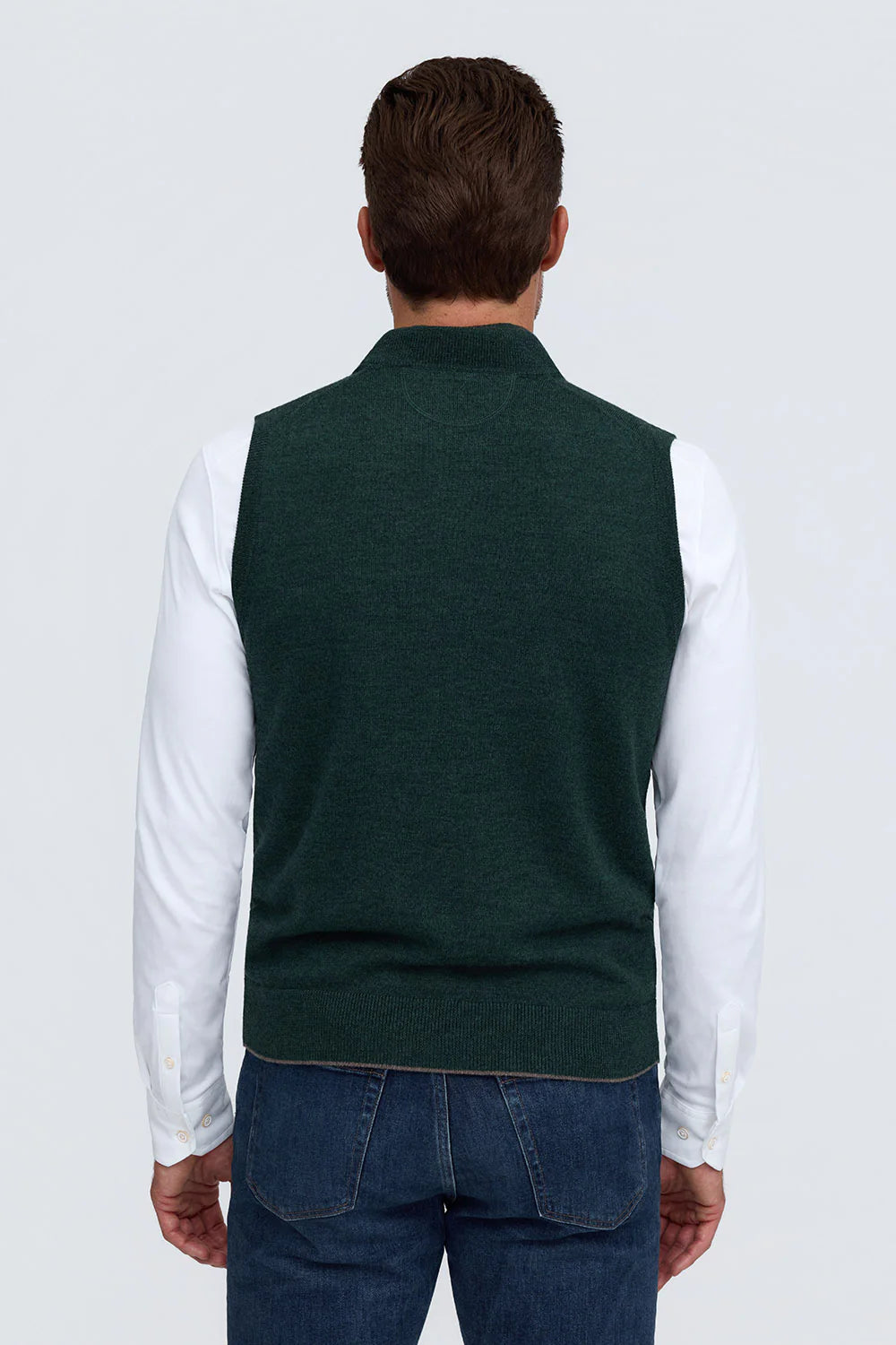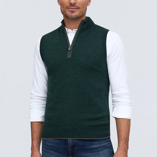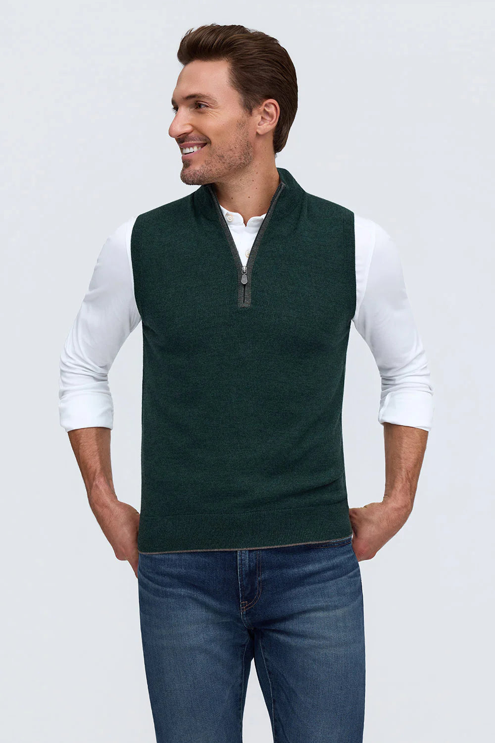 The Byron is our sporty version of the sweater vest. Made from 100% Extrafine Merino Wool with a mock neck quarter zip front for a casual look. When you need extra warmth, a great layering piece to pair with any of our Aqua Cotton tees, you'll look dapper on or off the golf course.