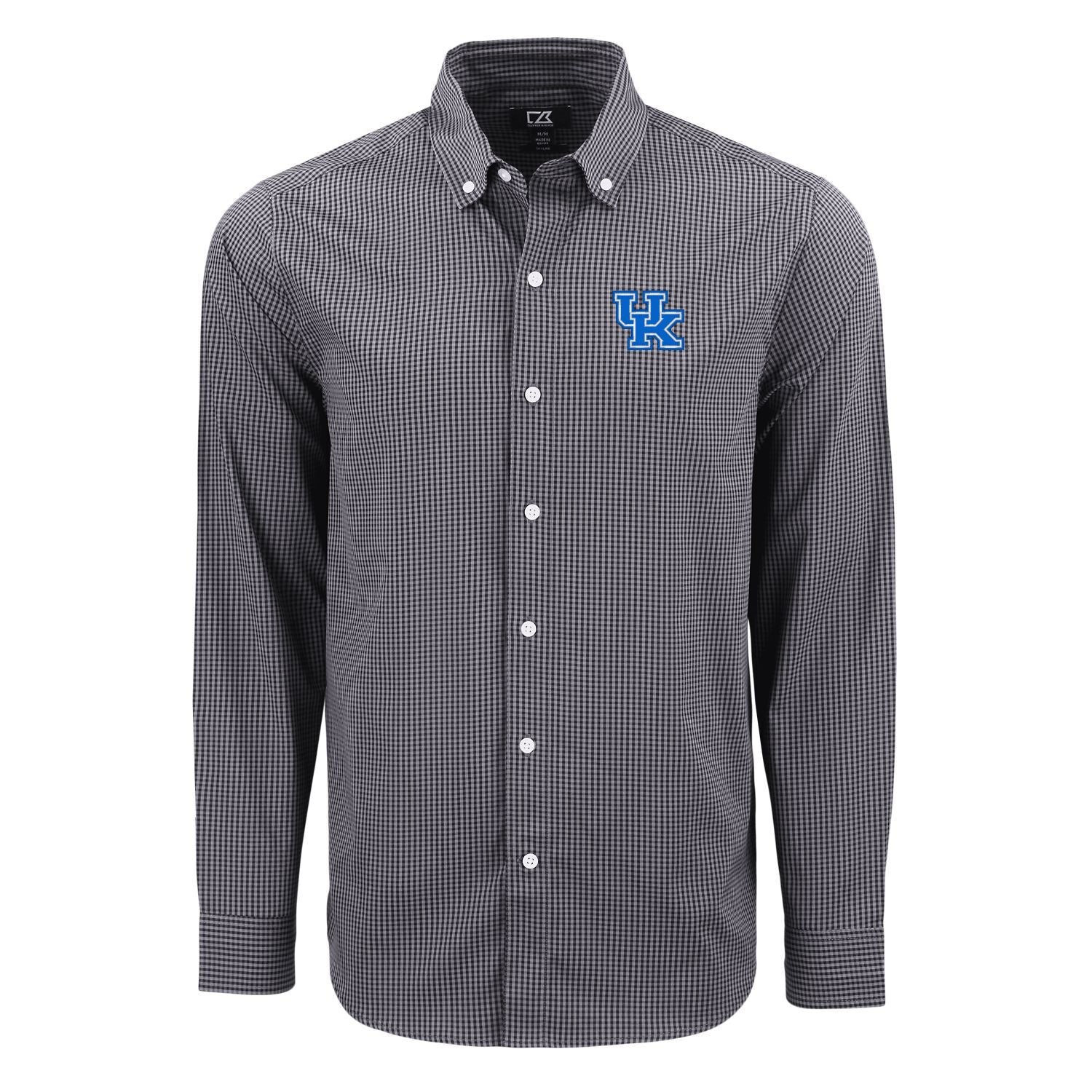 University of Kentucky Skyline Long Sleeve Gingham Dress Shirt in Black/Elemental Grey by Cutter & Buck