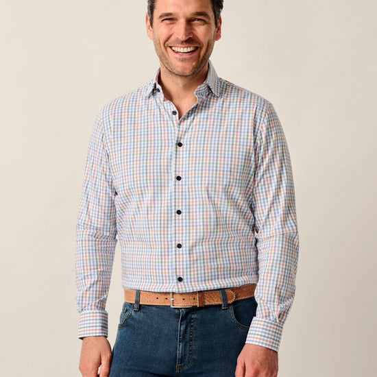 Made with a beautiful cotton blend that contains a bit of stretch and moisture-wicking properties, this is just like the sport shirt your dad used to wear only more comfortable.