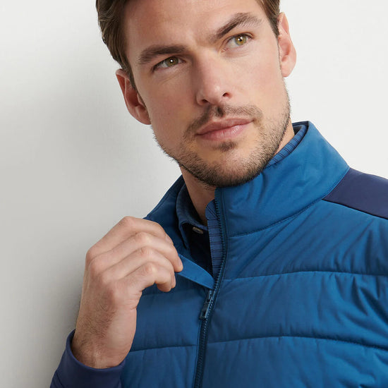 This midweight performance layer features active insulation that breathes in motion and maintains warmth when idle. It’s engineered with a quilted front panel with perforated insulation and stretch knit back and sleeves that are wind and water-resistant.